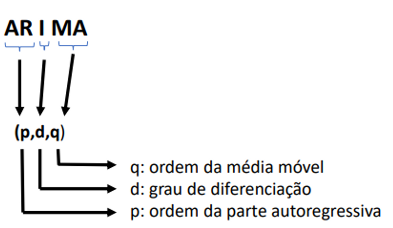 O ARIMA é composto por 3 elementos e o grau de cada elemento define o modelo, são eles: