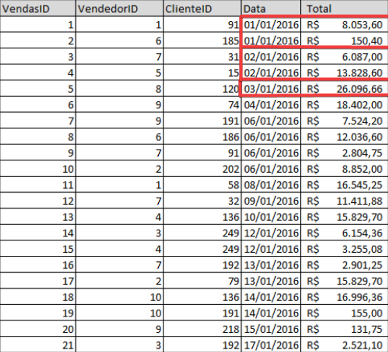 Podemos ver que temos o elemento “Data”, um atributo data pode ser tratada como categórico ou contínuo, podemos usar esses dados de vendas em um algoritmo de machine learning e ele vai considerar essa data como um outro atributo qualquer (categoria ou contínuo), ou seja, não necessariamente a presença de uma data em um conjunto de dados, torna ele uma série temporal.